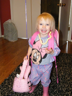 I put her dress on for church and she decided she wanted her purse, hat, backpack and last the sweater over the top of her pack pack. I thought she looked cute and chuckled a little to myself and she got mad! "Not funny mom!" She did not want her picture taken either.